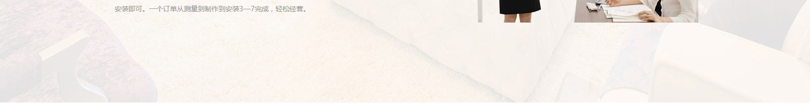 從店面前期,片區經理到您店面做店面定位市場分析、布料分析,設計師為您量身設計店面布局,到店面開業培訓師到店培訓導購店長的銷售、安裝、搭配。全程跟蹤服務更方便更專業。